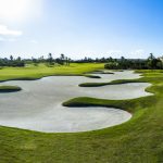 Beautiful par 4 with the green located on a peninsula in a lake which could also represent a good opportunity for a birdie or a place for missing shots.